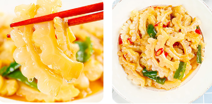 Вътрешността е кристално чиста, хрупкава и освежаваща, крехка и без шлака. В горещото лято, заповядайте на чиния с пържена горчива тиква за чиста топлина и облекчете огъня, който е богат на хранителни вещества.